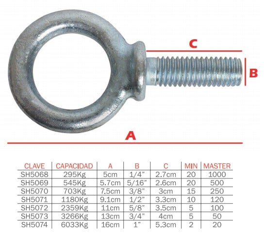 Armella de acero es ideal para sostener objetos colgantes o sujeción de tirantes de mástiles livianos.