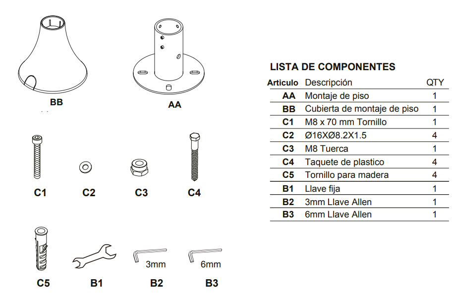 Base de suelo a techo con tapa de plástico para montaje de Videowall LED.