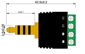 - Conector A: estéreo macho de 3,5 mm de 4 polos