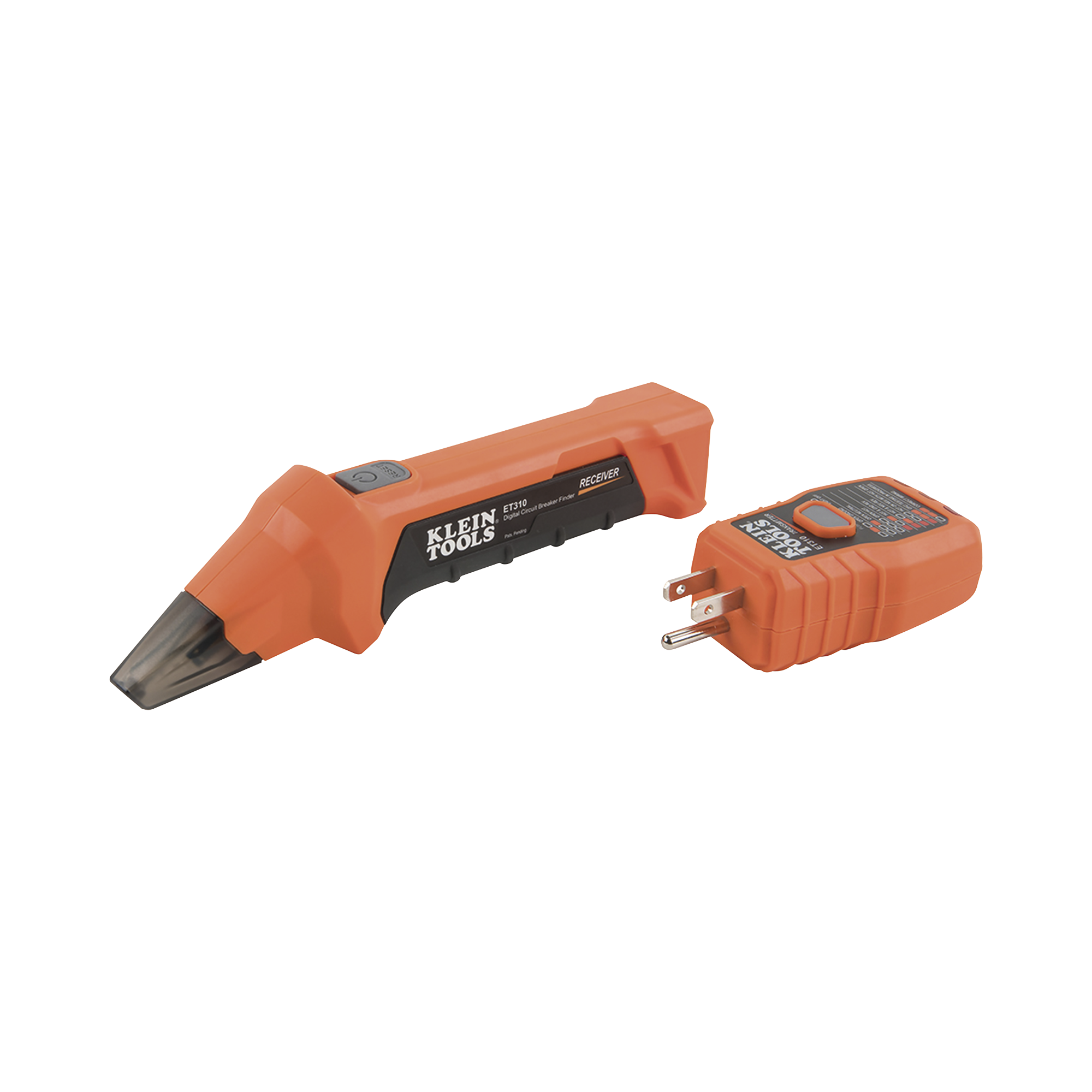 - Probador GFCI que consta de dos piezas: un transmisor conectado al tomacorrientes o accesorio eléctrico, y un receptor que se usa para escanear el cortacircuitos correcto en el panel.