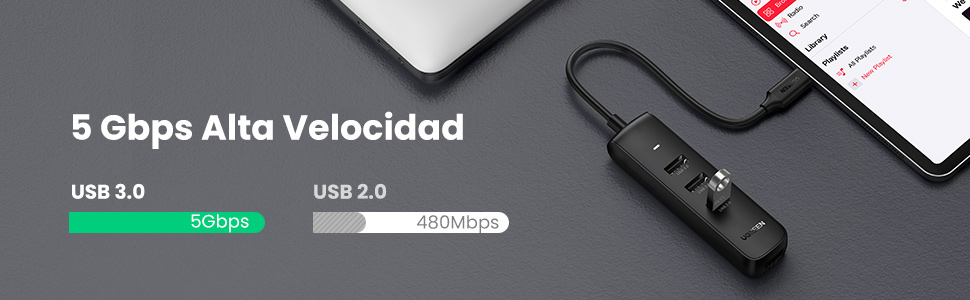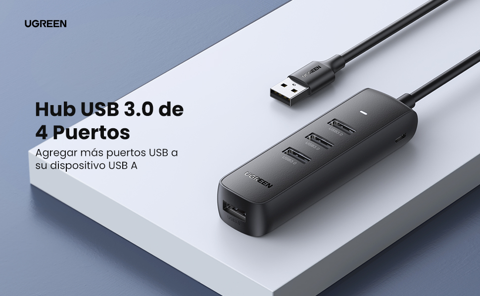 HUB USB-A 3.0 4 en 1 | 4 Puertos USB-A 3.0 (5Gbps) | Cable de 25 cm | Indicador Led | Ideal para Transferencia de Datos | Entrada USB-C para alimentar equipos de mayor consumo como discos duros | Color Negro. cantidad