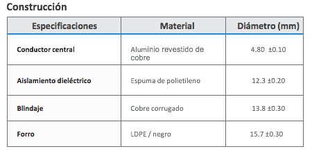 NOTA: Tramos de longitud máxima de 305 metros, para longitudes superiores comunciarse al departamento de ingeniería.