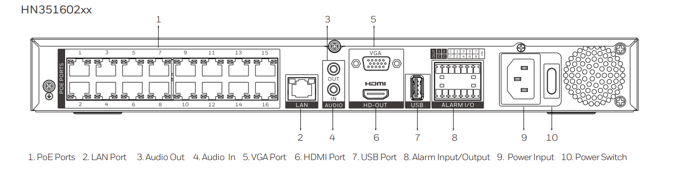 - Entrada de alarma de cámara Serie 35 en: Detección de movimiento, Pérdida de vídeo, Manipulación de cámara, Intrusión, Merodeo múltiple, Detección de multitudes.