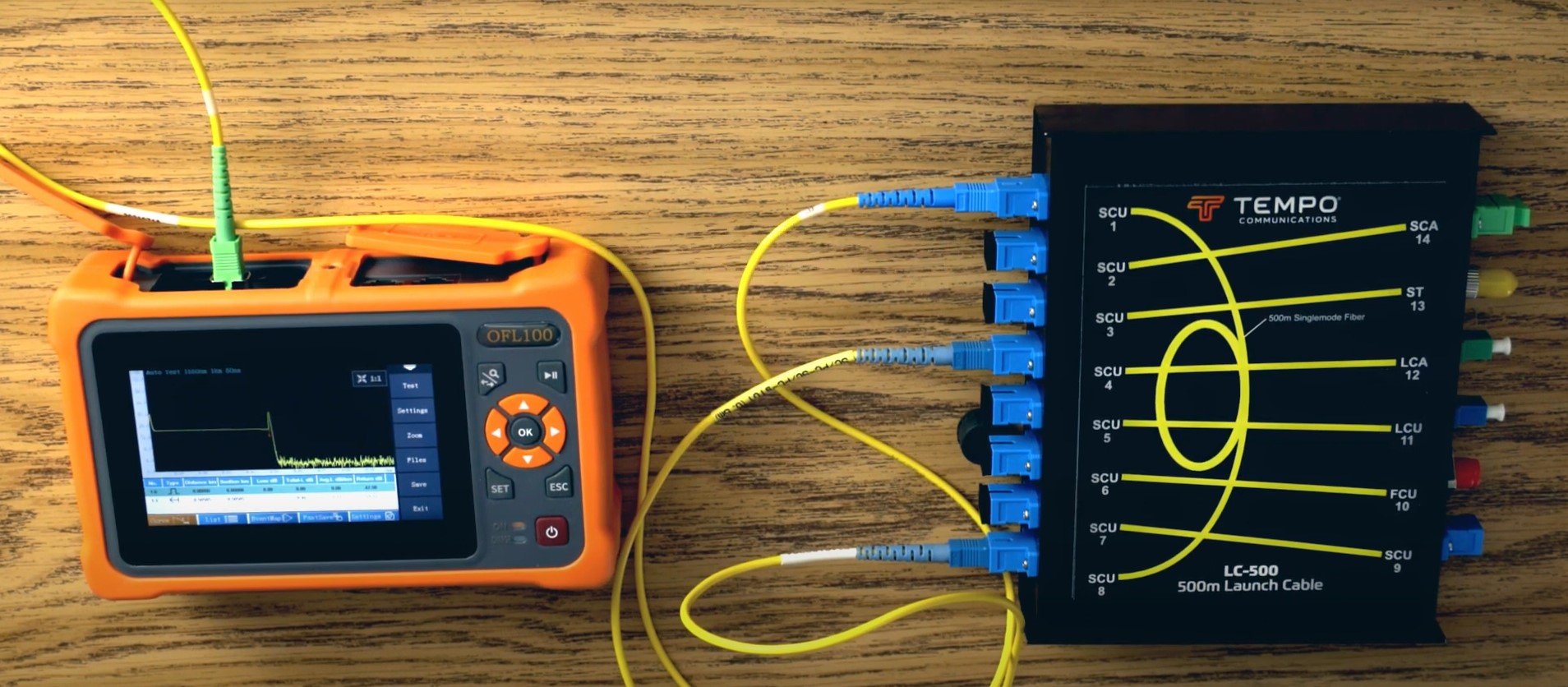 Se recomienda complementar el uso del OTDR OFL100 con una bobina de lanzamiento para eliminar la zona muerta, se recomienda el modelo LC-500