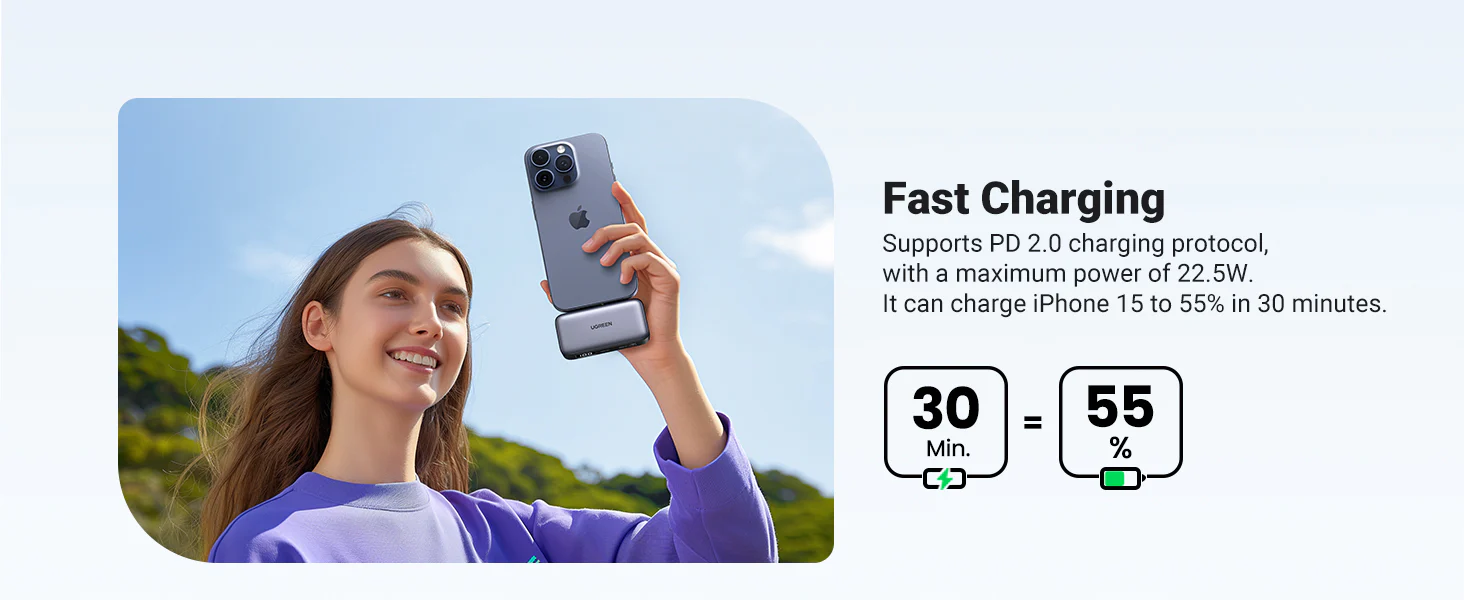 Power Bank 5000mAh | Conector USB-C Incorporado | 22.5W | Carga Rápida | Soporte Integrado | Pantalla Led | Compacto y Portatil | Compatible con iPhone 16 15 iPad Pro Galaxy Pixel..