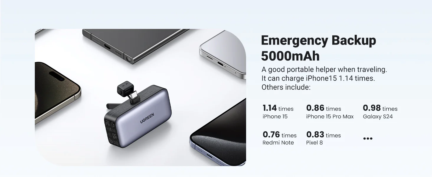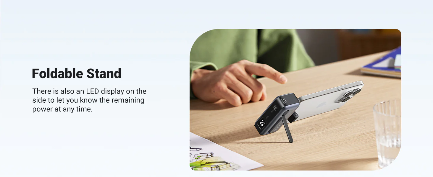 / Power Bank 5000mAh | Conector USB-C Incorporado | 22.5W | Carga Rápida | Soporte Integrado | Pantalla Led | Compacto y Portatil | Compatible con iPhone 16 15 iPad Pro Galaxy Pixel..