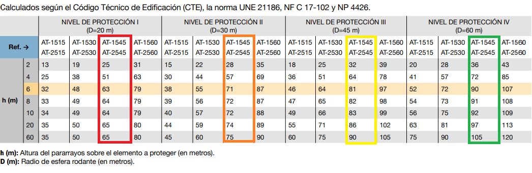 Normativa: UNE 21186:2011; NF C 17-102:2011; NP 4426:2013