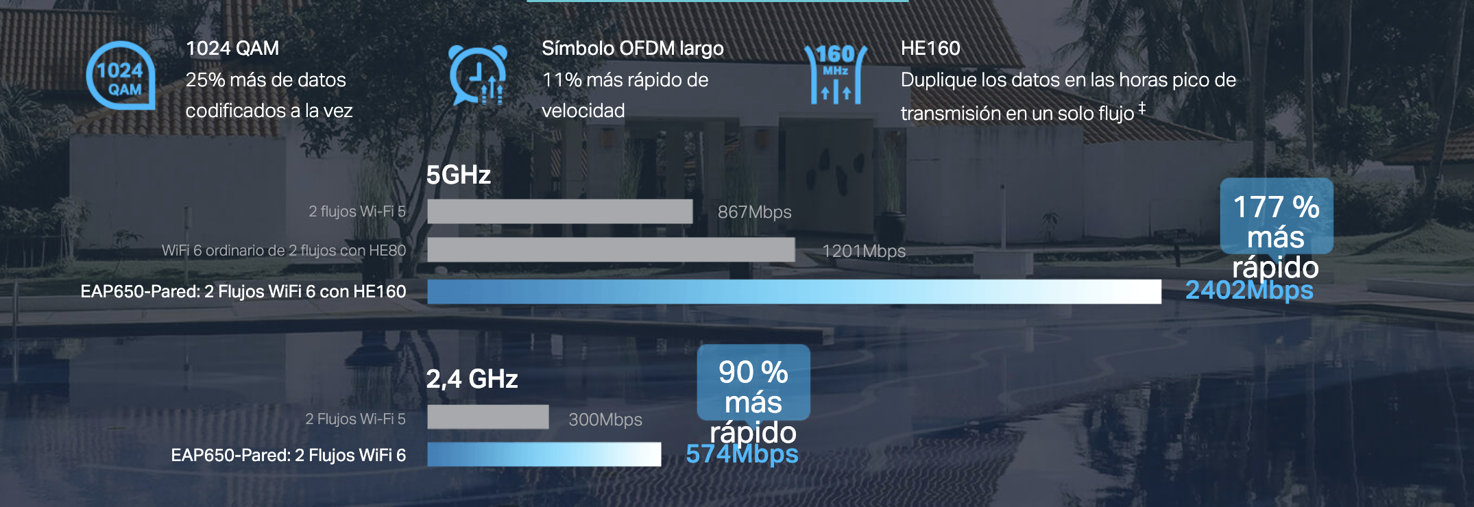 Multiples SSID (hasta 16, 8 por banda).