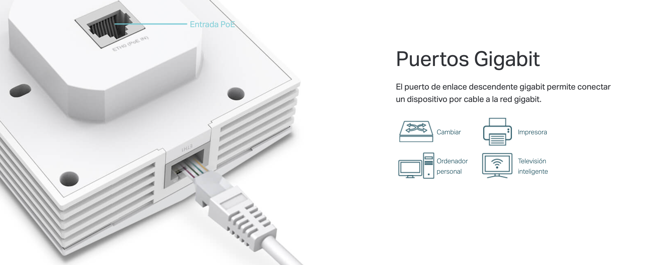 (3) 10/100/1000 Mbps (1 puerto soporta PoE de salida, necesita ser alimentado con PoE +) Salida máxima 13 W.