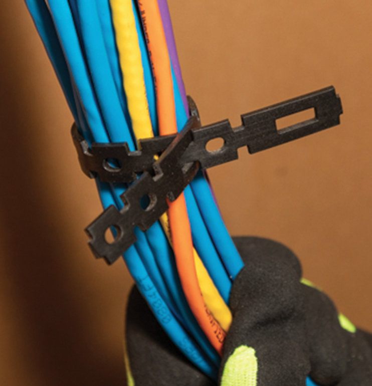 - Rollo de amarre de cable elástico que ayuda a organizar cables, alambres o cualquier cosa que necesite enrollarse
