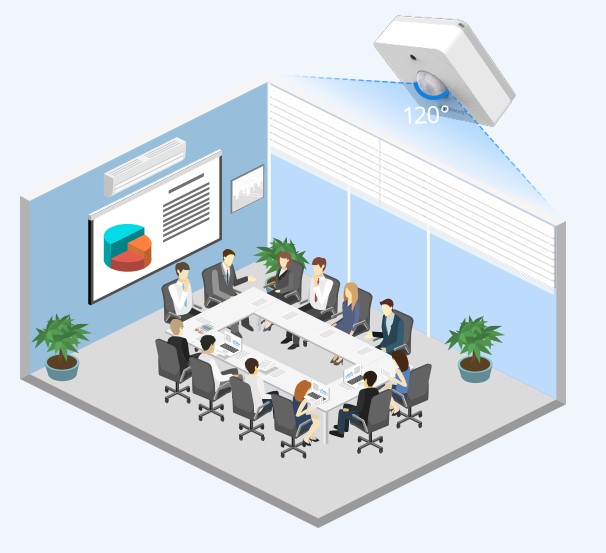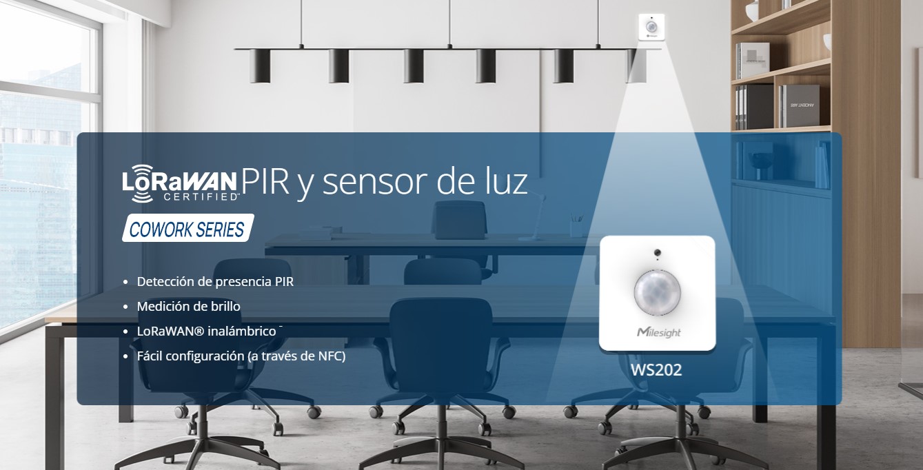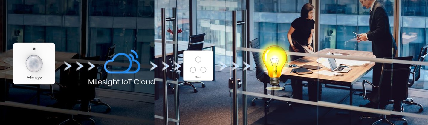 Al integrear el modelo WS202 con el modelo smart switch u otros dispositivosde controlador de iluminación LoRaWAN, las luces se pueden encender/apagar automáticamente cuando las personas entran o salen del espacio.