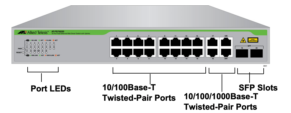 16 puertos 10/100 Mbps.